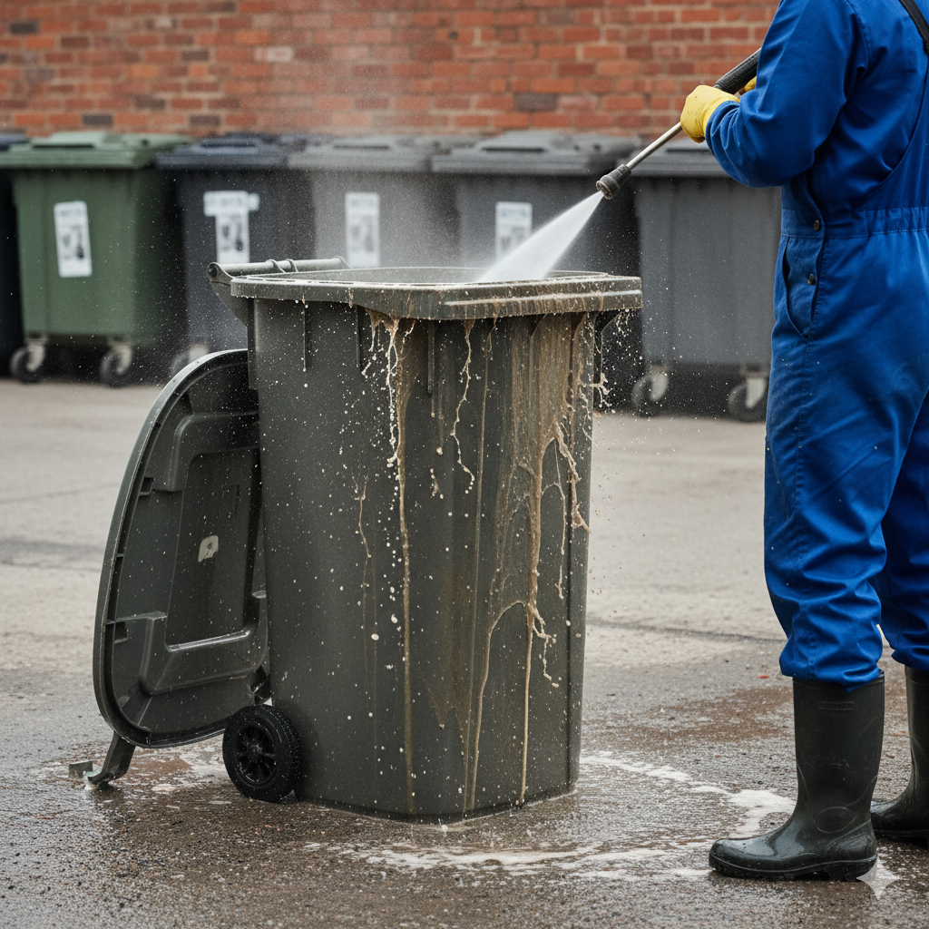 This practice sanitizes surfaces, improves, curb appeal, extends the lifespan of the containers by reducing corrosion, and preventing the spread of disease.
